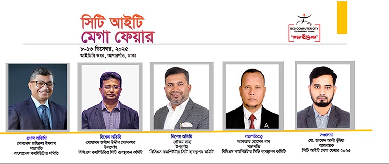 আজ সোমবার (৮ ডিসেম্বর) বিসিএস কমপিউটার সিটির নিচতলায় মেলা প্রাঙ্গণে জমকালো, বর্নিল ও বর্ণাঢ্য আয়োজন ‘সিটি আইটি মেগা ফেয়ার-২০২৫’-এর পর্দা উন্মোচন করা হবে। উদ্বোধনী অনুষ্ঠানে উপস্থিত থাকছেন প্রধান অতিথি বাংলাদেশ কমপিউটার সমিতি (বিসিএস)-এর সভাপতি মোহাম্মদ জহিরুল ইসলাম; বিশেষ অতিথি থাকছেন বিসিএস কমপিউটার সিটি ব্যবস্থাপনা কমিটির উপদেষ্টাদ্বয় মোহাম্মদ জসিম উদ্দীন খোন্দকার এবং গৌতম সাহা। সভাপতিত্ব করবেন বিসিএস কমপিউটার সিটি ব্যবস্থাপনা কমিটির সভাপতি আকতার হোসেন খান এবং পরিচালনা করবেন মহাসচিব ও মেলার আহবায়ক মো. জাহেদ আলী ভূঁইয়া।